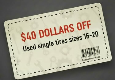 $40 used single tires all day long from 16 inches up to 20 inches installed, supply varies, excludes pairs and sets, does not include tire disposal fee